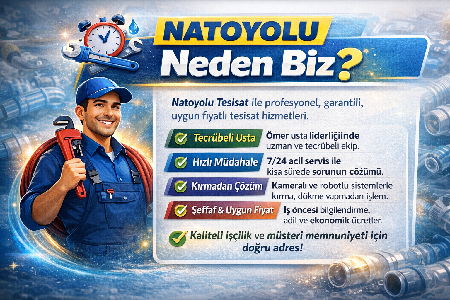 Natoyolu Tesisat olarak 7/24 acil tesisat hizmeti sunuyoruz.